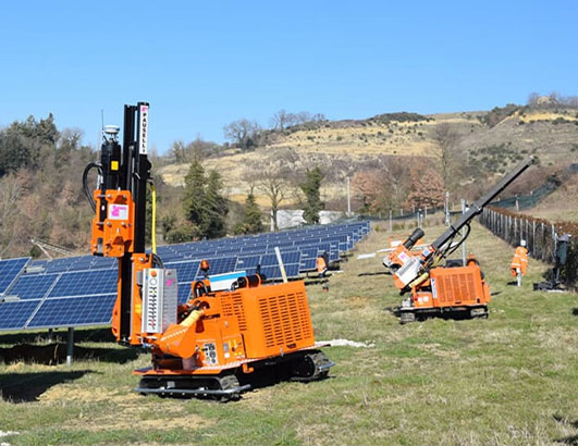 The photovoltaic pile driver is a key equipment for the construction of solar photovoltaic power stations. It is mainly used to efficiently and accurately complete the foundation construction of photovoltaic brackets.